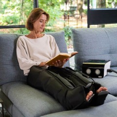 Ya puedes empezar. Colócate las perneras con postura cómoda y enciende el aparato. Notarás cómo se hincha, presiona y masajea desde los pies hasta las ingles. Es agradable y no duele.